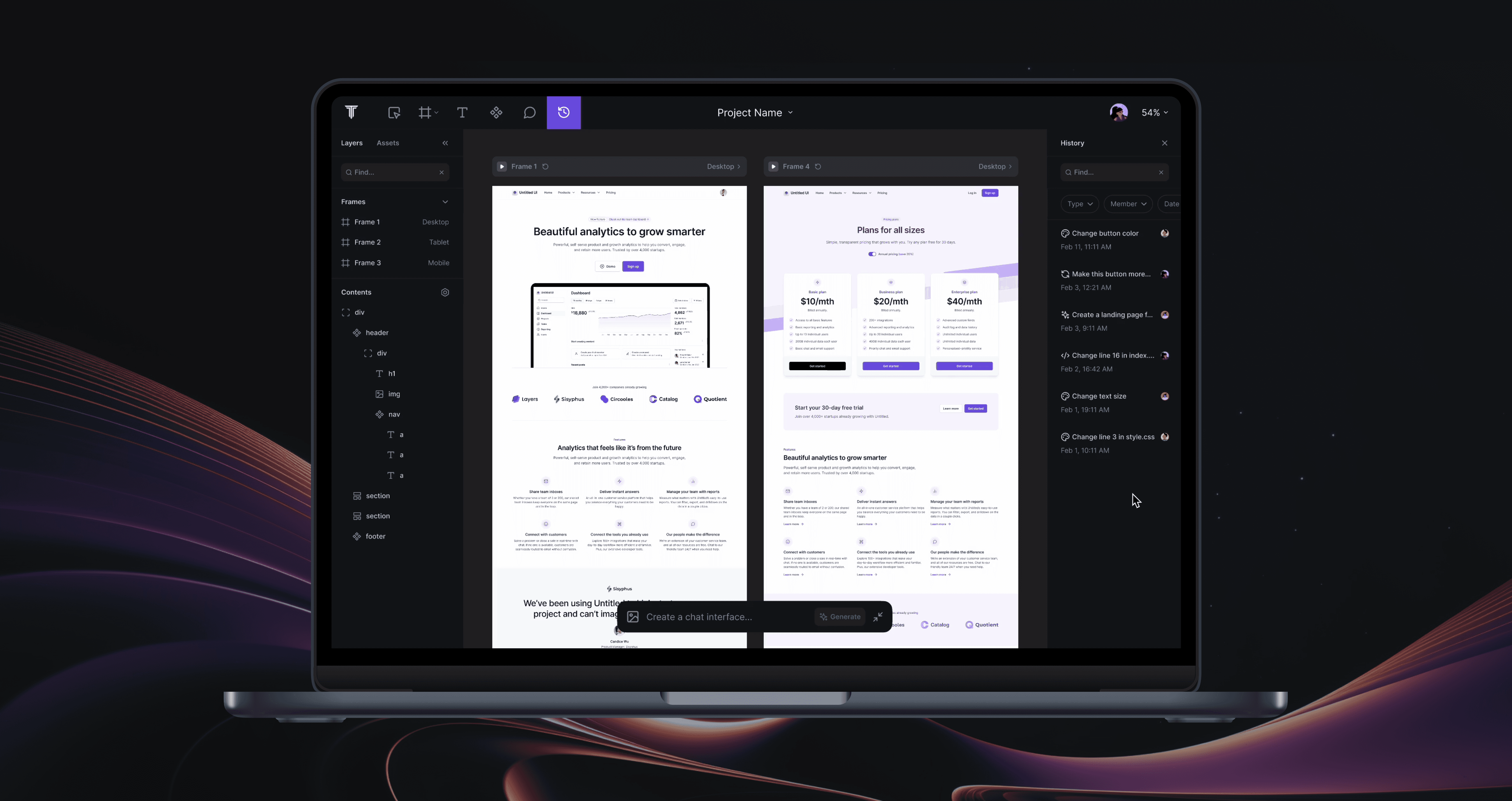 Another feature I want to introduce is the history panel, which allows users to access and make changes. However, the previous panel only focused on coding, and non-design history was not included, making it not user-friendly enough.