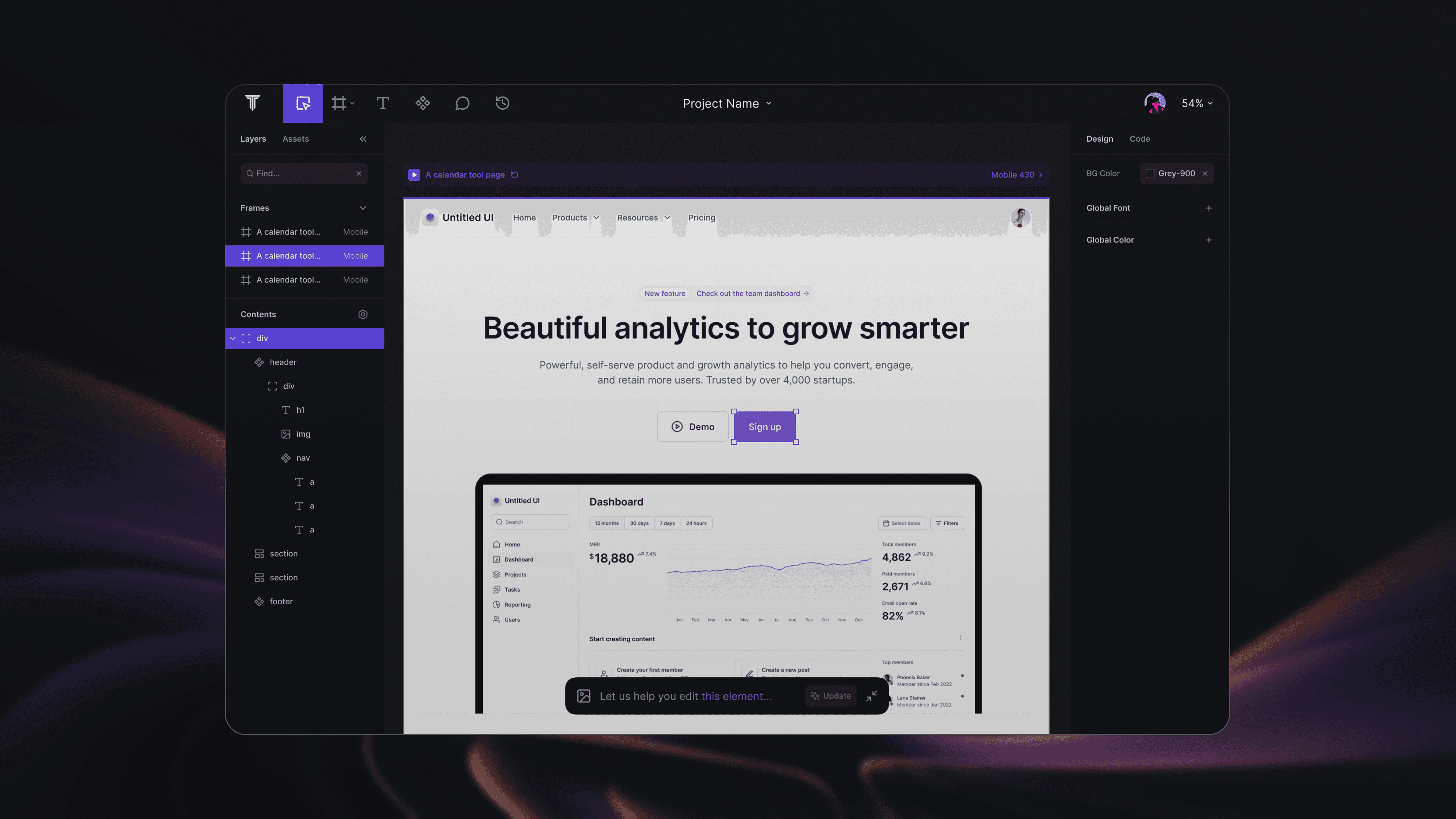 Blends manual input and tailwind CSS selector for users of all coding levels.